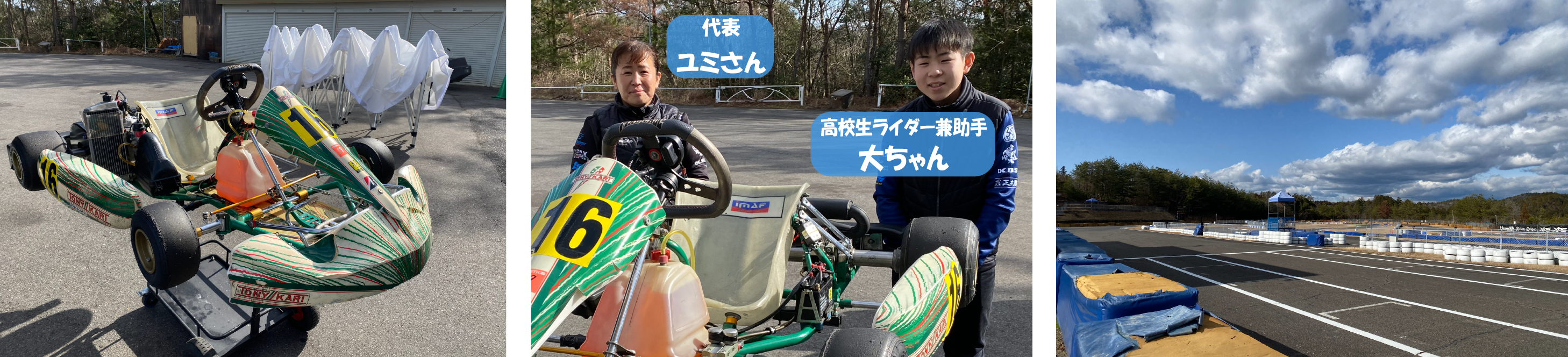 | ■走行のご案内 | 1台のカートを複数人でシェアし、サーキットのフリー走行の中で走行して頂くイベントです。 平日開催は基本午後の開催とし、13:00~16:00までが走行時間です。土日・祝日開催は基本全日の開催になり、午前9:00~12:00 午後13:00~16:00の2部制になります。走行台数が多い場合はクラス分けすることがあります。平日は台数も少ないのでマイペースに 走行出来ますので、初めての方や不慣れな方には特にお勧めです。 新しい事に挑戦してみたい!もっと速いカートに乗ってみたい!運動不足を解消したい!スキルアップに活用したい!など、幅広く皆さんに 楽しんで頂ける走行会になっています! レーシングスーツやヘルメットなどの貸し出しもサーキットさんが行っていますので、手ぶらで楽しい 仲間と本格的なレーシングカートを楽しみましょう! ※マシントラブル・クラッシュなどイレギュラーが発生した場合、走行時間が変動することがございます。 ※遅刻・早退の場合も、走行時間を確保出来ないことがございます。 ※1台を1人で貸切も可能です。自由に日程をご指定頂けます、ご相談下さい。 (レースなどにブッキングした場合は、不可能な場合もございます) |