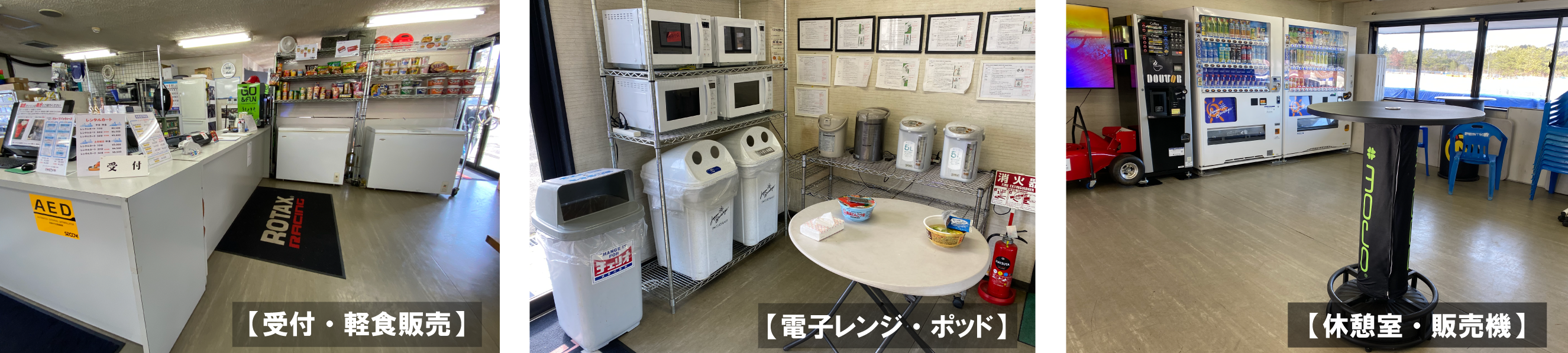 | ■サーキットインフォメーション | ●軽食販売(パスタ・ピラフ・うどん・カップ麺・お菓子など) ※平日も販売しています ●自販機・電子レンジ・ポッドあり ●トイレ・シャワールームあり ●休憩室あり ![]() |